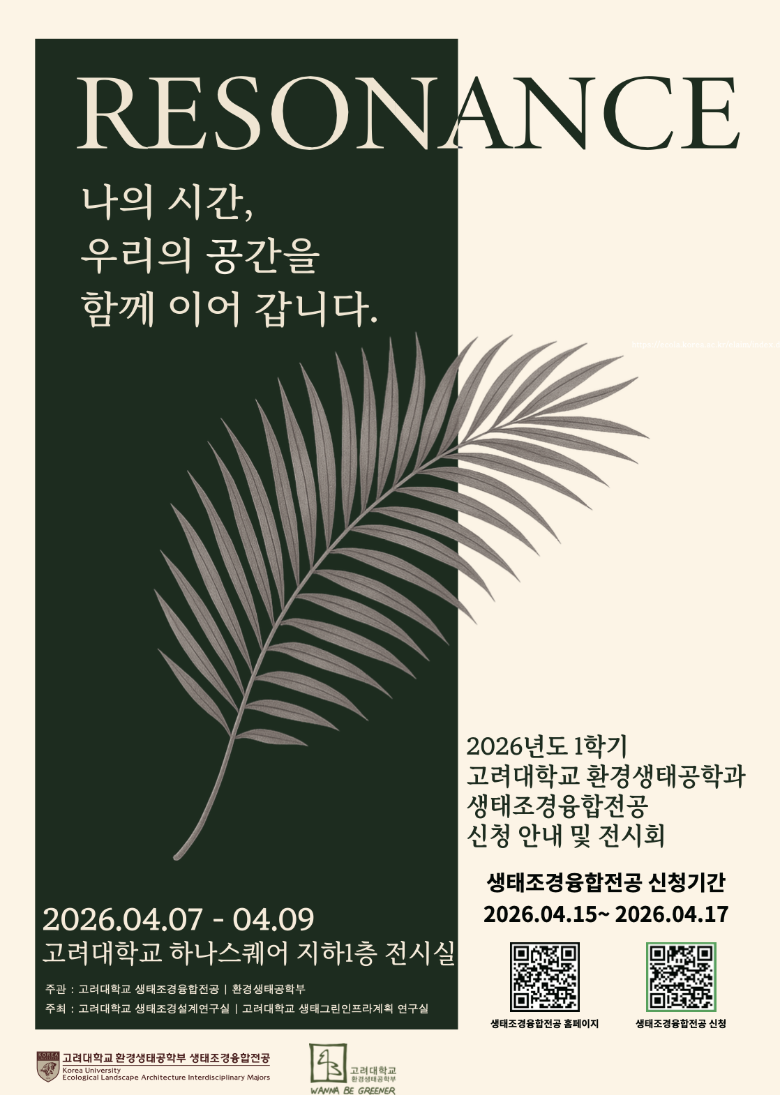 2026년도 1학기 고려대학교 환경생태공학과 생태조경융합전공 신청 안내 및 전시회를 개최합니다.